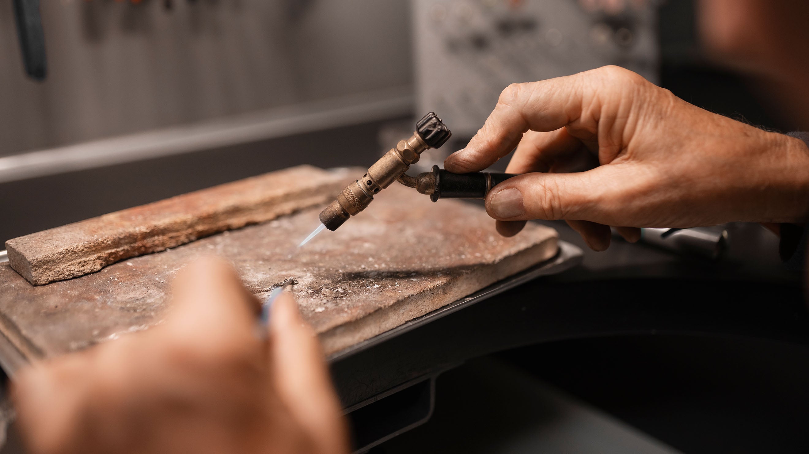 Entre em um mundo onde a arte e o artesanato se encontram em perfeita harmonia. Nosso ateliê de joias é um paraíso para entusiastas de joias finas, onde cada peça é meticulosamente feita à mão com paixão e precisão por meio de um vínculo de fraternidade. O espaço de trabalho está vivo com o brilho das ferramentas — rodas de polimento, serras de joalheiro e instrumentos de entalhe intrincados — cada um contando uma história de dedicação ao ofício.